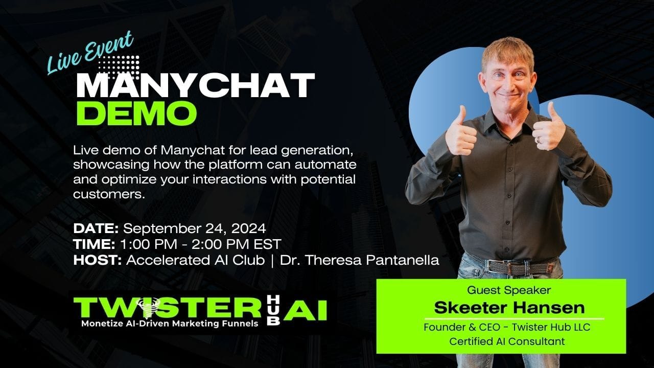 Ready to elevate your lead generation? Join Skeeter for a live demo of Manychat. Learn to automate and boost your engagement with potential clients.